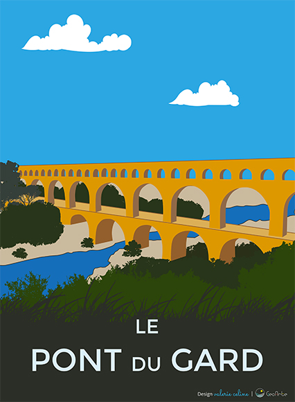 Peinture d’à-plats aux couleurs tranchées de sites naturels, historiques et architecturaux de la région montpelliéraine | ® GeoArte